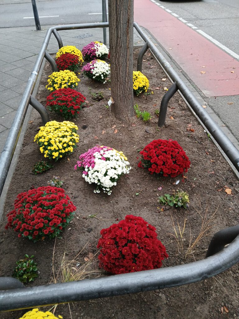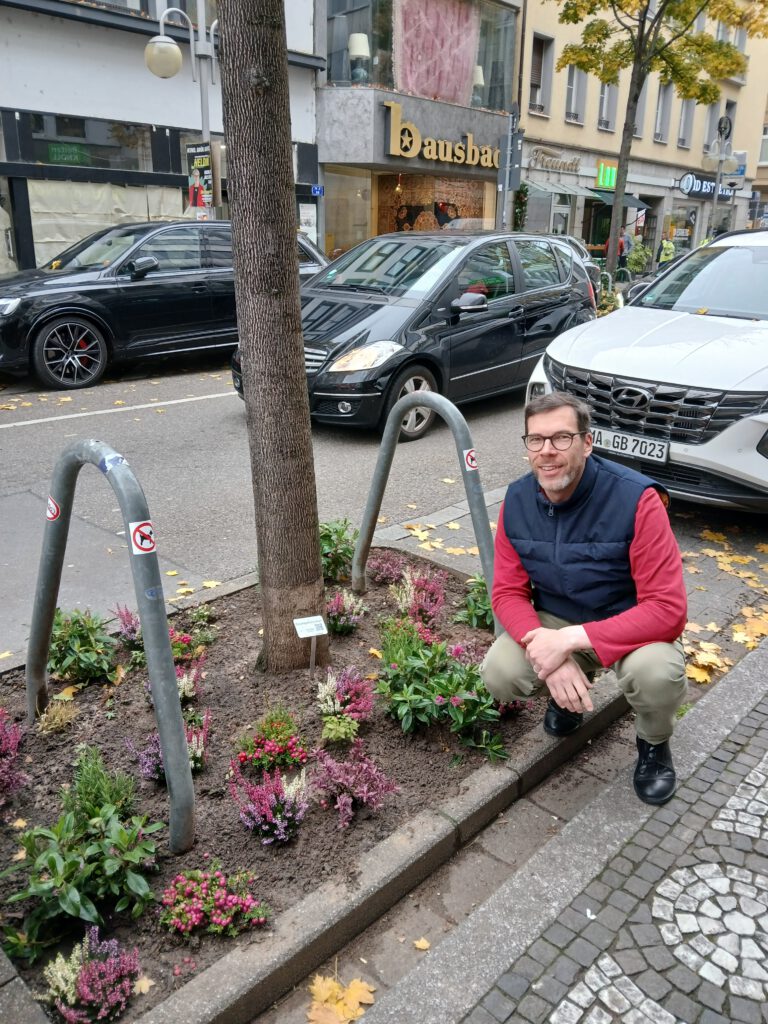 Auch entlang der Kunststraße blüht es. André Drescher hat von seiner Nachbarin, der Mitarbeiterin der Schmucklounge von den Baumpatenschaften erfahren. Karin Berg kümmert sich seit Oktober um den Ahornbaum und sein bepflanztes Umfeld. „Weil es mir Spaß macht“, wie sie sagt. Die Baumpaten zeigen Flagge für das Stadtbild und hoffen auch, dass die Menschen die Bemühungen akzeptieren. „Ich finde, wir können so mit überschaubarem Aufwand Qualität in die Stadt bringen“, sagt Drescher, der zusätzlich zu den von der Stadt gepflanzten Blumen noch einige ergänzt hat. Auch Drescher und Berg schauen jeden Tag nach dem rechten. Erfahrungsgemäß werde die Hemmschwelle, etwas zu vermüllen höher, wenn etwas schön aussieht.