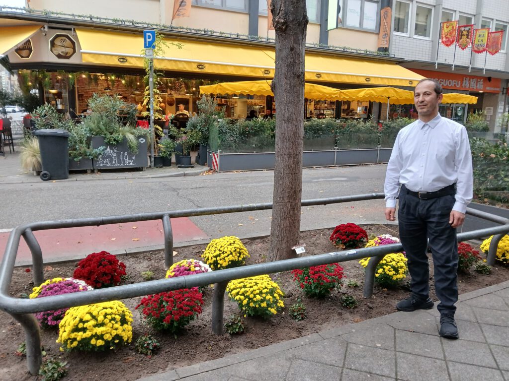 Einer, der ganz neu eingestiegen ist, ist Ibrahim Ilik, der Eigentümer des Restaurants Vefa, seit 23 Jahren in Q3, 19, wie er stolz erzählt. Bereits gut sichtbar hat er entlang seines Außenbereichs zirka zweimal fünf Meter mit Eisblumen verschönert. Rund um den Baum vor dem Lokal, der bislang auf versiegeltem Grund stand. „Ich werde viel darauf angesprochen“, sagt er. Sein Motiv ist schlicht und einfach: „Etwas Schönes schaffen, was Allen Freude macht. Ich will so meinen Beitrag zum Stadtbild leisten.“ Ilik liebt die Natur – wie er selbst sagt -und ist inzwischen ein bisschen zum Kenner der geeigneten Stadtpflanzen geworden. Sein Kleingarten in Weinheim sei ein Lehrmeister, sagt er. Und wer pflegt das zweimal fünf Meter große Blumenbeet vor dem Restaurant? „Na ich, ich schaue jeden Morgen, ob alles noch in Ordnung ist.“ Da er täglich im Restaurant ist, spricht er auch schon einmal Hundebesitzer an, freundlich aber bestimmt. Denn nur so hat die grüne Fläche Bestand.