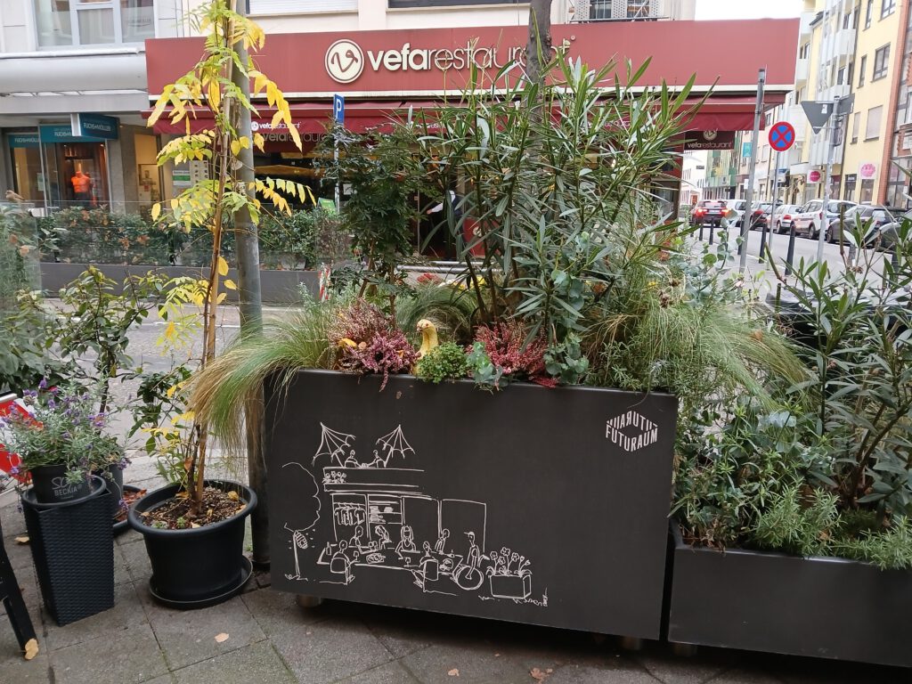 Die Begrünung der Fressgasse war ein Herzensprojekt der City Factory, in der Einzelhändler, Bürger, engagierte Menschen der Innenstadt oder Gastronomen vertreten waren. Mehr Grün für die Einkaufsstraße, die wie viele Straßen in den Quadraten zu den heißesten im Sommer zählen, war das Thema, das in den großen und kleinen Beteiligungsrunden von FutuRaum stets auf der Tagesordnung stand. Die Bepflanzung mit Blumenkübeln, die Teilentsiegelung der Fressgasse durch Umwandlung von betonierten Flächen, auch teilweise rund um die Bäume, das sind weitere Schritte, die bis Ende November umgesetzt sind. FutuRaum fungiert als Initiator und auch Geldgeber.