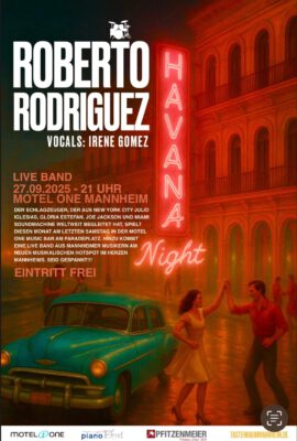 Am Samstag, den 27. September, um 21 Uhr laden Motel One Manager Maurizio Ardito und sein Team zu einer unvergesslichen Havana Night ein – einem Abend mit Live-Musik, Tanz und pulsierendem Stil in einer der schönsten und verstecktesten Locations Mannheims. Headliner des Abends sind der weltbekannte Perkussionist Roberto Rodriguez, die kolumbianische Sängerin Irene Gómez und eine All-Star-Latin-Band unter der Leitung von Pianist Adrian Zalten. […]